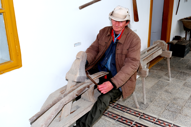 Mann an historischem Gerät